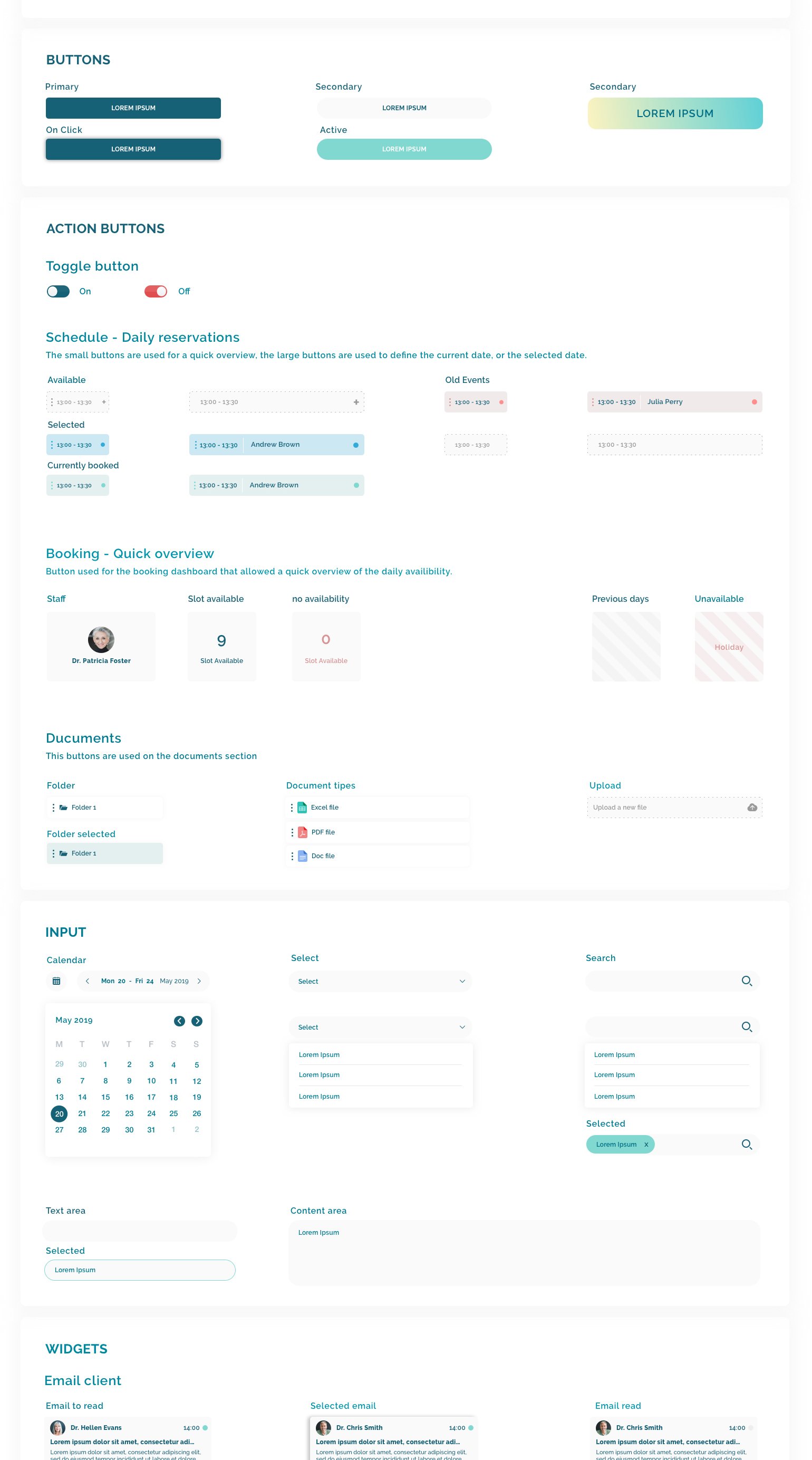 Functionally - Clicking inside the daily cell/slot redirects to the relative doctor's page with the daily bookings. Here, it is possible to see the timetable which includes past and future appointments, free space to allocate new appointments, and the option within the cell to select the time and book the appointment.